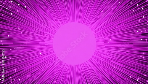 A vibrant, radiant design with radiating pink lines and subtle white speckles creates a dynamic abstract graphic.