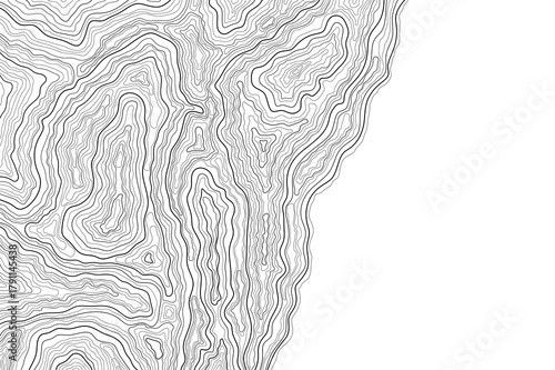 abstract black and white topographic map line pattern. Wave-like contour lines, minimalism, and geometry. Damask pattern. Topographic background with empty space for text.