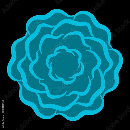 Abstract blue flower with layered petals and glowing outline on black background.