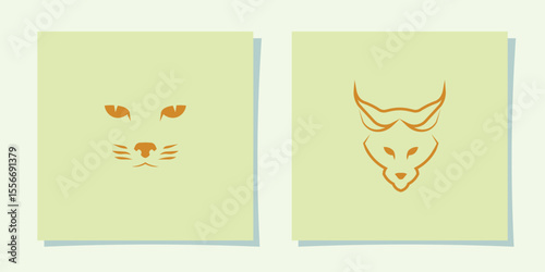 Abstract bobcat head logo, bobcat head outline logo with minimalist design