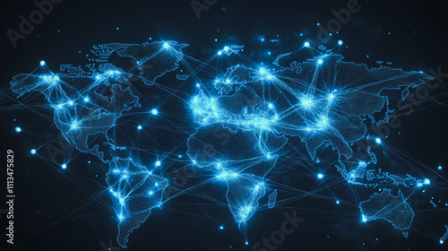 abstract business connection of line from nail node to node on world map background Innovation network points Earth's surface