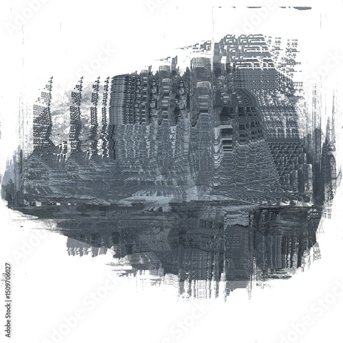 Abstract Digital Distortion with Grayscale Patterns and Textured Layers