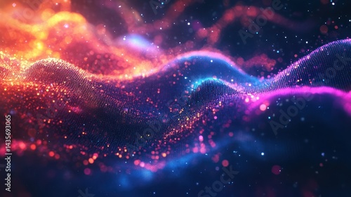 Abstract Digital Landscape with Glowing Particles and Gradient Illumination