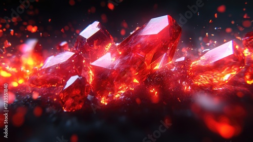 Abstract fiery red crystal formation against a dark background creating a sense of power