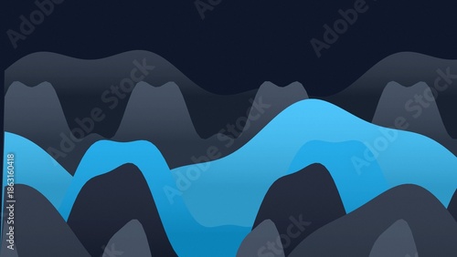 Abstract flowing blue river through dark undulating landscape
