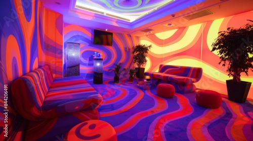 Abstract party environment featuring a vibrant backdrop with dynamic color patterns