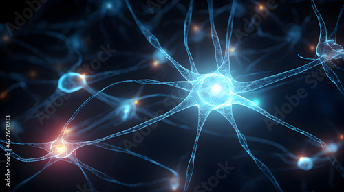 Active neural connections in bright blue color