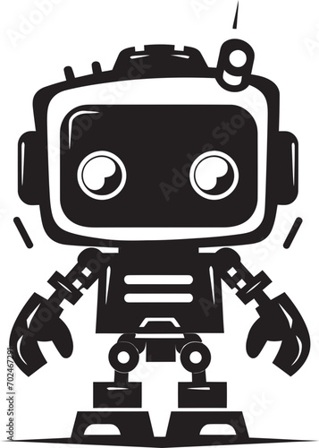 Adorable Defender Cute Tiny Combat Bot Emblem Pocket Protector Black Vector Cute Combat Robot Icon