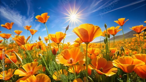 Aerial View Blooming California Poppy Field Summer Meadow Golden Eschscholzia californica Macro Photography