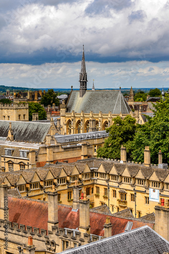 Aerial view of Brasenose College, Oxford, England. Oxford is known as the home of the University of Oxford
