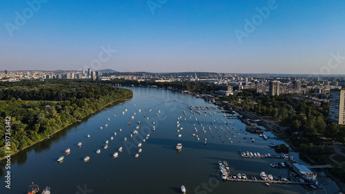 Aerial View of Moored Boats on the Sava River