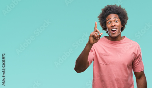 Afro american man over isolated background pointing finger up with successful idea. Exited and happy. Number one.