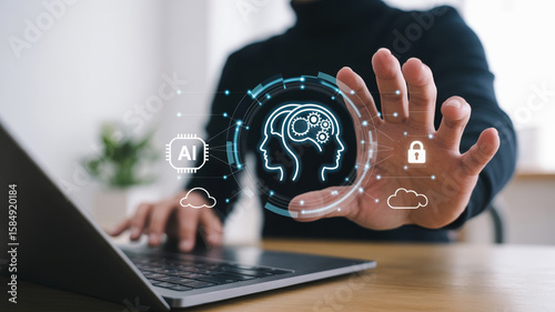 AI customer support for ecommerce. AI technology innovation security digital cloud data business futuristic intelligence. AI for service