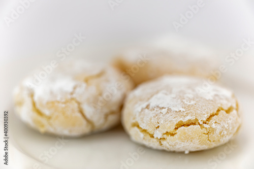 Almond biscuits coated with icing sugar