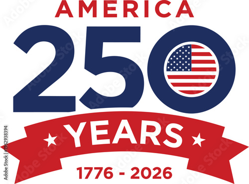 America 250 years anniversary logo with american flag and banner