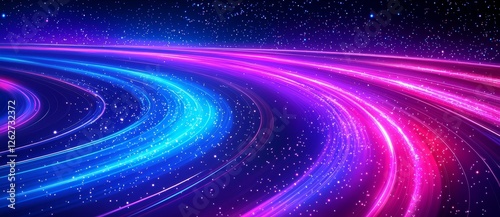An artistic representation of a nighttime cityscape with technological elements, featuring light trails and a 3D wireframe hill.