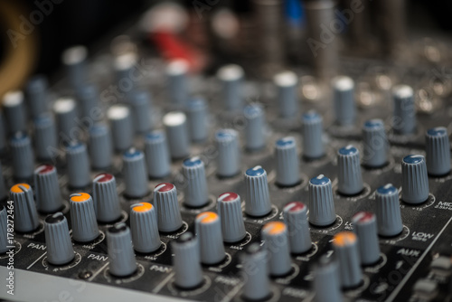Analogic Sound Mixer. Professional audio mixing console radio and TV broadcasting
