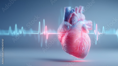 Anatomical heart with pulse waveform representing cardiology diagnostics and cardiovascular healthcare concept.