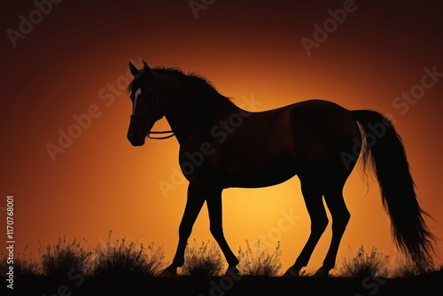 araffe walking in the sunset with a horse in the foreground
