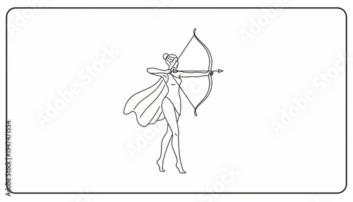 Archer Woman Silhouette, Dynamic Pose, Aiming Bow and Arrow, Freedom Concept