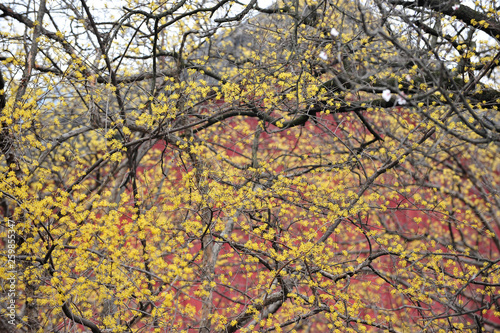 Asiatic Cornelian Cherry at the Korean traditional house village in Jeonju, South Korea