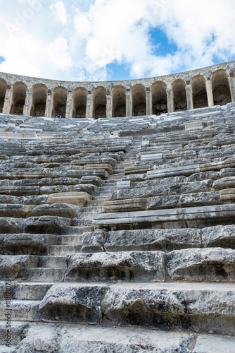 Aspendos Ancient Theater in Antalya, Turkey. Aspendus (Attic: Ἄσπενδος; Pamphylian: Εστϝεδυς) was an ancient Greco-Roman city in Antalya province of Turkey. The site is located 40 km east of the moder