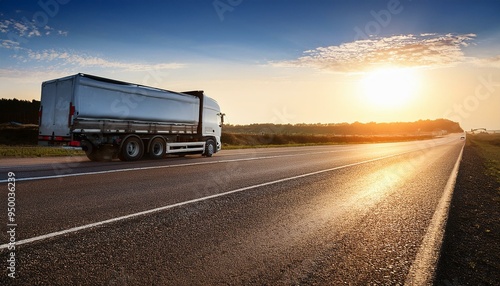 asphalt roadwith a tilt truck. lorry moving on sunny evening