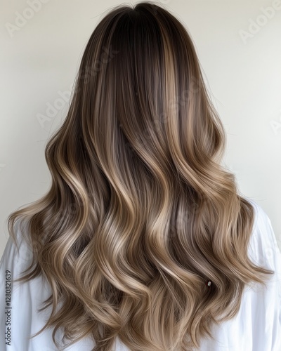 Back View of Ombre Wavy Hair on White Background