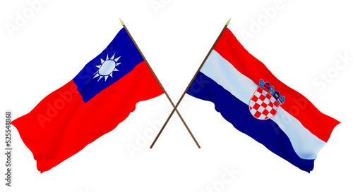 Background, 3D render for designers, illustrators. National Independence Day. Flags Taiwan and Croatia