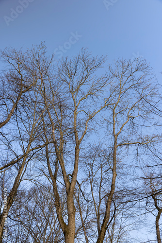 Bare trees in early spring in sunny clear weather