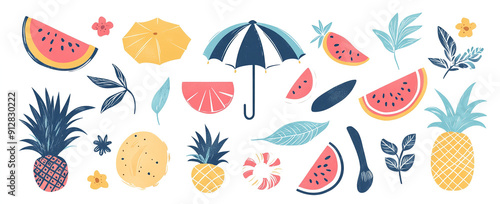 Beach Bash Design Kit: Hand-Drawn Vector Summer Symbols and Elements, Ideal for Trendy Posters, Banners, and T-Shirt Templates