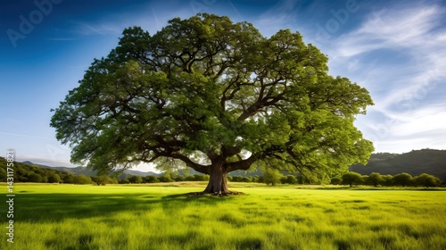 Beautiful big old tree in the field Photo