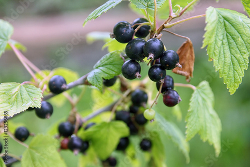 beautiful bush of black currant with small black berries and gre