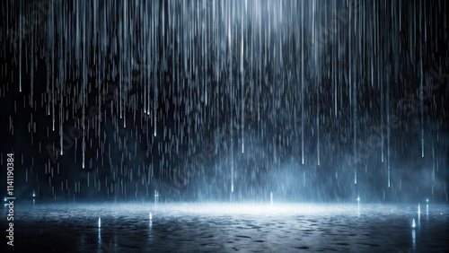 Beautiful of rainfall on plain black background, raindrops, precipitation, water droplets, weather, nature, storm