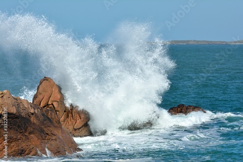 Beautiful view on the pink granite coast in Brittany. France