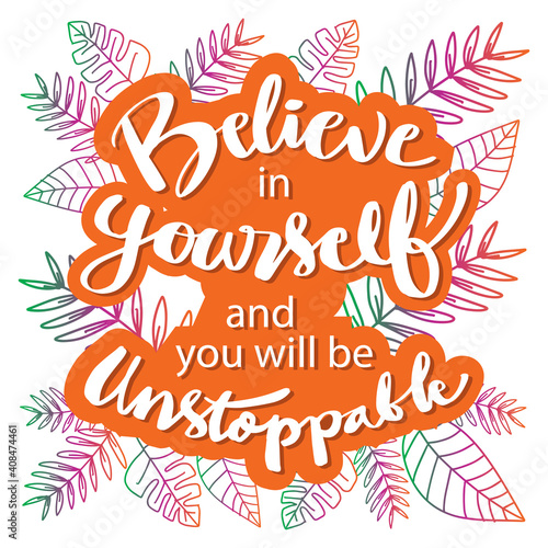 Believe in yourself and you will be unstoppable. Motivational quote.