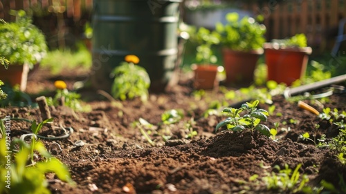 Benefits of composting waste, showing composting toilets and the resulting rich compost