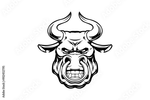black and white bull mascot logo illustration
