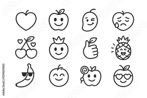 Black and white fruit emojis with various facial expressions