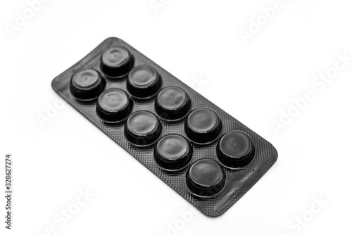 black blister with pills on a white background