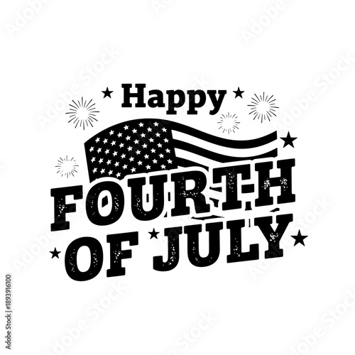 Black distressed Happy Fourth of July patriotic greeting.
