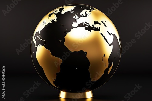 Black Globe with Gold Accents. 3D Illustration of Golden and Black Globe Isolated on White Background with Map of Africa