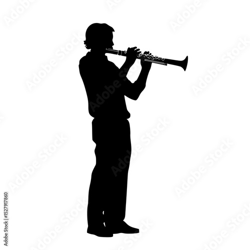 black silhouette of a man playing the flute on a white background black, flute, instrument, man, play, silhouette , Generative art.