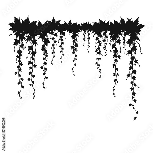 Black silhouette of hanging ivy vines with leaves plant