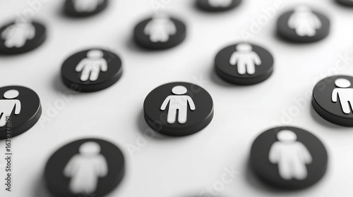 Black tokens with white human figures arranged on a flat surface for a creative design concept related to inclusion and diversity