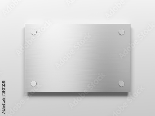 Blank brushed metal nameplate isolated on light gray background. Copy space. 3d illustration.