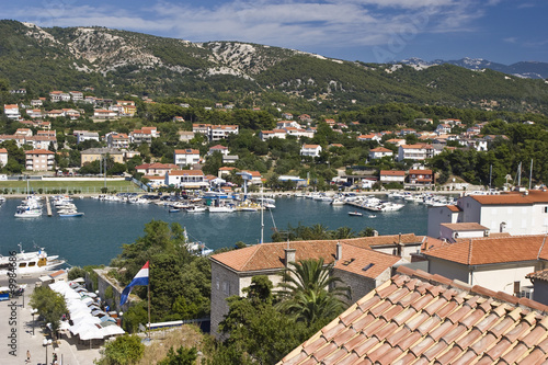 Blick die Stadt und den Hafen von Rab