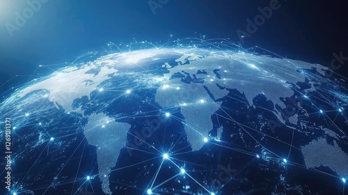 Blockchain-powered global payments, digital nodes connecting financial hubs worldwide.