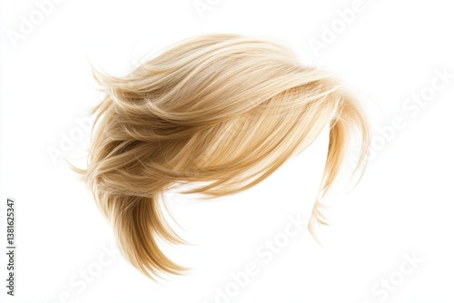 Blond wig isolated, wavy hair on white background for beauty and fashion concepts