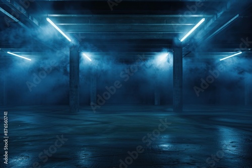 Blue Neon Lit Underground Garage